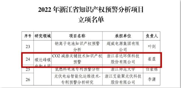菲达环保获浙江省知识产权预警分析项目立项