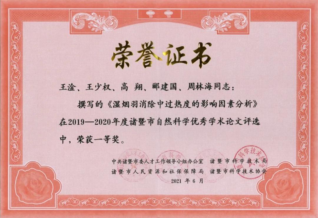 菲达环保技术人员多篇论文获优秀论文奖